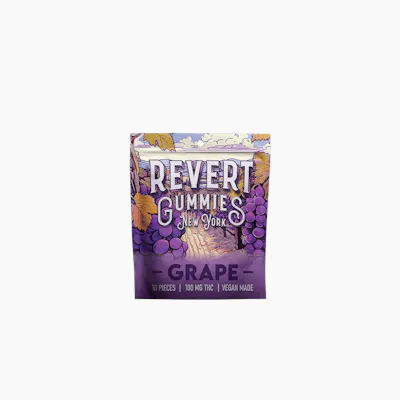 Revert Grape 100mg Gummy Pack Revert THC Gummies are crafted for consistency, convenience, and a clean edible experience. Each package contains 10 easily separable 10mg portions (100mg total) for simple, precise dosing. Made with cannabis distillate and a pectin-based (gelatin-free) formula, these gummies offer a smooth, reliable effect and a soft, chewy texture, and are vegan-made. Grape features a rich, sweet, slightly dessert-forward flavor with a smooth finish.