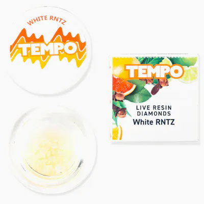 Tempo’s White RNTZ Live Resin Diamonds are dominated by Limonene and Terpinolene, this vibrant hybrid delivers sweet-candy flavor with creamy citrus and tropical undertones. Each hit provides an uplifting rush that enhances creativity, focus, and mood, keeping the experience light and energetic. Through Tempo’s meticulous slow-cure process, pure THCA diamonds form within a terpene-rich live resin sauce, preserving the strain’s signature aroma and euphoric balance. The result is a flavorful, high-impact extract ideal for daytime elevation, creative flow, and social sessions.