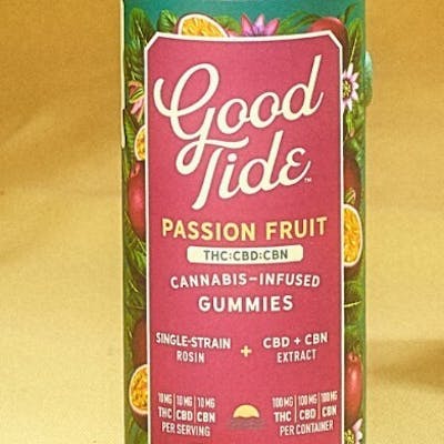 Take your mellow to the next level with Good Tide Passion Fruit THC:CBD:CBN gummies. An Indica single-strain rosin is enhanced with an extra dose of CBN and CBD’s relaxing properties and the tropical delight of passion fruit flavor to help you drift into a world of dreams. Sway into the perfect hammock nap.