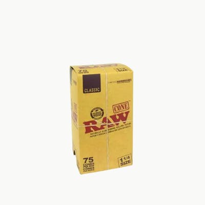 RAW Pre-Rolled Classic Cones are perfect for people who prefer not to hand-roll. They are extremely convenient because you only need to fill them up, twist off the end, and light it up. Features: Natural Gum Unbleached Paper All Natural, Additive Free 75 Cones Per Box