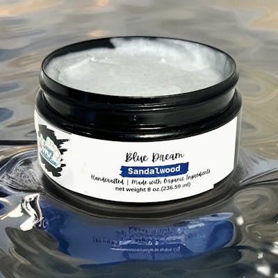 Are you in need of some dreamy relaxation? Get ready to experience bliss with Blue Dream 1,000 mg CBD Body Butter by Soapy Addiction! Our rich, all natural body butter is formulated for maximum hydration that soothes away any soreness, reduces inflammation and provides an invigorating relaxation. Plus the woody, earthy and deep Sandalwood scent envelops your senses with every use.​Ingredients:Organic Shea butter (naturally refined), Coconut Oil (cocos nucifera Oil), Organic Arrowroot Powder (Manihot utilissima), Organic Sweet Almond Oil (Prunus dulcis), Organic Vitamin E Oil (Tocopheryl Acetate), Optiphen (phenoxyethanol, caprylyl clycol), Triethanolamine, Organic Glycerin (glycerol), E-WAX (Cetearyl Alcohol, Polysorbate 60), Full Spectrum CBD, Sandalwood Essential Oil, Fragrance, Blue 1.PARABEN, SULFATE, AND PHTHALATE FREEMADE WITH ORGANIC BUTTERS AND OILS