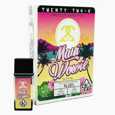 Maui Wowie Cart by 22K – Tropical, Uplifting Sativa Now available at Holistics Cannabis Dispensaries Maui Wowie by 22K is a premium vape cart featuring the classic Maui Wowie strain, a legendary sativa celebrated for its tropical pineapple aroma and sweet, citrus-forward flavor. This cartridge delivers a smooth, flavorful inhale that preserves the strain’s bright, fruity terpene profile, offering a clean and consistent vaping experience for fans of tropical, energizing strains. The effects are uplifting and euphoric, sparking creativity, focus, and an overall sense of well-being. Maui Wowie is perfect for daytime use, social activities, or creative projects, providing a light, energetic high that keeps the mind clear while promoting an upbeat mood. Why Choose Maui Wowie by 22K: Sweet tropical pineapple and citrus flavor profile Smooth, consistent vapor with full terpene expression Uplifting sativa effects ideal for energy, creativity, and daytime use Shop Maui Wowie Cart by 22K at Holistics Cannabis Dispensaries Order online for in-store pickup or local cannabis delivery Looking for vape pens near me, weed near me, or a trusted dispensary near me? Holistics offers premium options like this one.