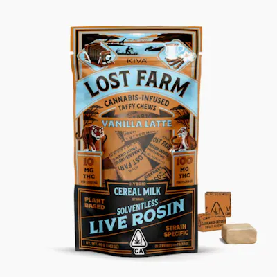 Vanilla Latte Chews by Lost Farm – Creamy Coffee Flavor, Live Rosin Hybrid Now available at Holistics Cannabis Dispensaries Vanilla Latte Chews by Lost Farm deliver a rich, dessert-inspired edible experience infused with strain-specific live rosin for full-spectrum effects. Featuring the popular Cereal Milk hybrid, these chews combine creamy vanilla with lightly roasted coffee notes and subtle berry sweetness—resembling the smooth, comforting finish of a perfectly crafted latte. Made by Kiva’s Lost Farm line, these THC edibles are designed to preserve the plant’s natural terpene profile for a more authentic and flavorful cannabis experience. Expect balanced hybrid effects that begin with a gentle uplift in mood and mental clarity, followed by a relaxing, easygoing body feel. Ideal for afternoon or evening use, these chews support stress relief, social comfort, and a mellow, happy mindset without overwhelming intensity. Each piece is precisely dosed, making it easy to control your experience whether you’re new or experienced. Why Choose Vanilla Latte Chews by Lost Farm Creamy vanilla and coffee flavor with sweet berry undertones Live rosin infusion for full-spectrum potency and flavor Balanced hybrid effects for relaxation and mood elevation Shop Vanilla Latte Chews by Lost Farm at Holistics Cannabis Dispensaries Order online for in-store pickup or local cannabis delivery Looking for THC edibles near me, weed near me, or a dispensary near me? Holistics offers premium options like this one.