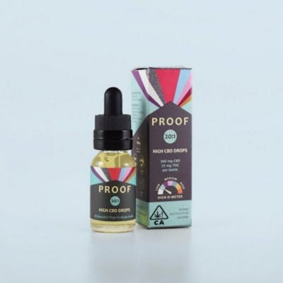 Proof’s 20:1 (20 parts CBD for every 1 part THC) tincture is a minimally intoxicating product with a generous amount of CBD. Perfect for those new to cannabis or all-day consumers looking for the beneficial effects of full spectrum CBD. Ideal for daytime and continuous use. Also great for pet owners looking for relief from stress or discomfort. Per dose (0.5ml): 10mg CBD & 0.5mg THC Per bottle (15ml): 300mg CBD & 15mg THC Ingredients: medium-chain triglyceride (MCT) coconut oil, cannabis oil.