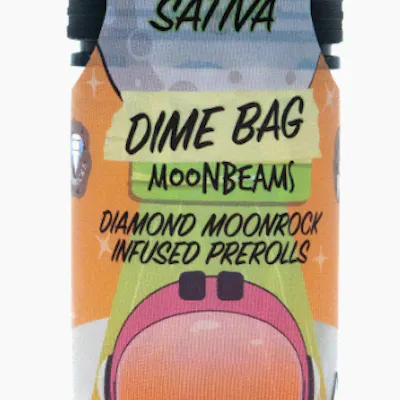 Prepare for liftoff with Dime Bag Moonbeams! These five half-gram diamond moonrock-infused prerolls are like a cosmic journey for your senses. Crafted from premium whole nug flower infused with liquid diamonds, terps, and kief, each joint reaches stratospheric potencies while delivering an unbelievably smooth and flavorful smoking experience. Designed with portability in mind, this pocket-friendly five-pack of 0.5g joints is perfect for those who are always on the move or for sharing intergalactic vibes with friends. Elevate your smoking experience to new heights with Dime Bag Moonbeams – where every puff is a journey to the stars.