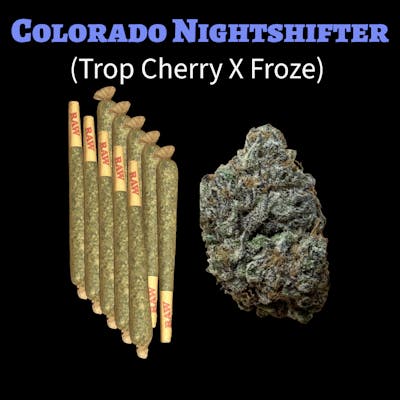 Colorado Nightshifter is a cross of Trop Cherry X Froze. This strain is an indica leaning hybrid. Bringing aromas and flavors of Trop Cherry with citrus cherry terps and Froze's berry fruit rollup terps.