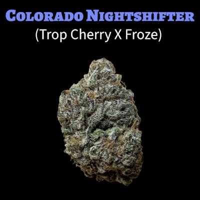 Colorado Nightshifter is a cross of Trop Cherry X Froze. This strain is an indica leaning hybrid. Bringing aromas and flavors of Trop Cherry with citrus cherry terps and Froze's berry fruit rollup terps.