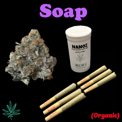 "Soap" is a combination of Animal Mints and Kush Mints, which are both known for their potent effects and minty flavor profiles. Animal Mints, a cross between Animal Cookies and SinMint Cookies, brings a strong body high and couchlock, which is complemented by the cerebral stimulation of Kush Mints, a hybrid of Bubba Kush and Animal Mints. With a complex aroma that combines the cooling mint overtones with subtle hints of earthiness and sweetness from its Cookies heritage. "Soap" is suited for users seeking relief from pain, insomnia, or stress, given its likely heavy-hitting indica dominance. The minty aspect of its flavor profile also makes it a refreshing choice for those who enjoy invigorating tastes.