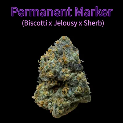The Permanent Marker strain originally selected by Doja Exclusive. This indica-dominant hybrid comes from crossing Biscotti with Jealousy and Sherb Bx1 to create a powerhouse hitter that’s super sweet yet funky, earthy, diesel-ridden, and candy-like. Permanent Marker might cause an uplifting yet buzzing and focusing high that creeps into carefree sedation.