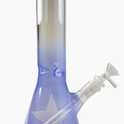 Glass - 8" Burst Classic Beaker Base - Teal Burst Classic Beaker Base. Designed with a smooth ombre color fade and a unique star burst pattern, this piece delivers both visual appeal and reliable functionality. The classic beaker design provides excellent stability and increased water capacity for smoother filtration. Built from 4mm thick durable glass, this piece features a glass-on-glass diffused downstem for improved smoke diffusion and smoother hits. The ice pinch (ice catcher) also doubles as a comfortable hand grip, allowing you to add ice for cooler, more enjoyable sessions.