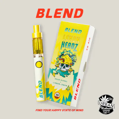Sour Diesel + Lisbon Lemon - Find your happy state of mind with Blend, the 2g all-in-one device is designed for balance, power, and flavor. By combining our in house distillate for maximum potency with our premium live resin for authentic taste, Blend delivers a 1:1 harmony of strength and terpene-rich flavor in every puff. The result? A smooth experience that hits hard without ever sacrificing quality. Whether you’re chasing bold effects, true-to-strain profiles, or simply a more elevated session.