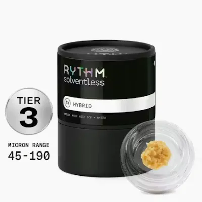 RYTHM Tier 2 Live Rosin delivers an extremely pure expression of each strain from the #1 Flower Brand in the World¹. RYTHM Tier 2 Solventless Concentrates are high quality and slightly lower in potency and terpenes than Tier 1. 100% Solventless, and rafted using just ice, water, heat, and pressure, our Rosin is made without chemicals to preserve the true-to-plant taste, high terpene content, and strong, rich flavors of RYTHM’s iconic strains. Gogurtz [orig: Cap Junky x Runtz] is a Hybrid strain featuring an enticing fusion of ripe berries and notes of creamy frozen yogurt.