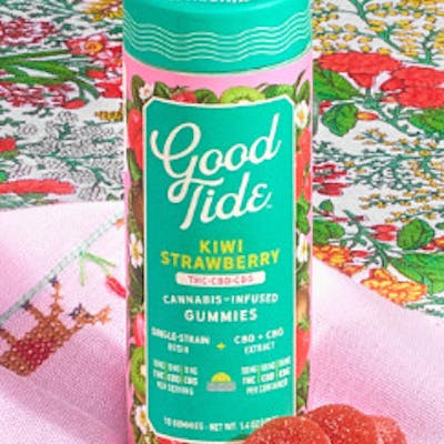 Lean into relaxation and recovery with Good Tide Kiwi Strawberry THC:CBD:CBG gummies. Hybrid single-strain rosin along with an extra boost of CBG are wrapped up with juicy kiwi strawberry flavors to help you fully reset.?