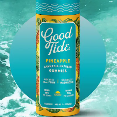 Feel the sand between your toes as you bite into a Good Tide pineapple gummy. Infused with the properties of Sativa-dominant strains, these pineapple gummies produce an uplifting experience that begins with true tropical fruit flavor. The naturally occurring terpenes and minor cannabinoids present in our solventless hash rosin complement the real-fruit pineapple ingredients to create a perfect combination of flavor, aroma, and effect. Pop one in your mouth and laugh the day away.