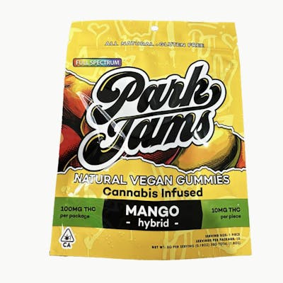 Park Jams gummies—where flavor meets the beat in every bite. Crafted with care and creativity, our natural, gluten-free, vegan gummies are infused with premium full spectrum cannabis extract, delivering a smooth and euphoric experience. Park Jams are more than just a treat; they're a vibe. Our mango gummies are where flavor meets flow! Get ready to groove with these tantalizing treats that'll have your taste buds droppin' beats with every chew. Crafted to perfection, our mango gummies boast a texture that's as smooth as silk, yet delightfully chewy, taking your mouth on a lyrical journey of pure satisfaction. Whether you're chilling at home or jamming at the park, these gummies are the perfect companion. So, grab a pack, turn up the volume, and let the flavor flow. It's time to elevate your groove with gummies that bring the flavor and the funk, jam on!