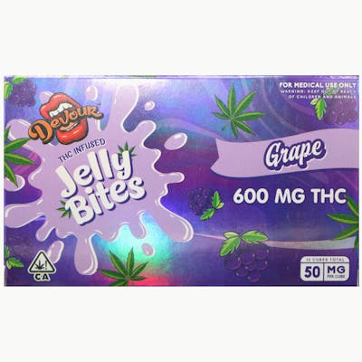 Devour Candy Jelly Bites! They Come in small jelly cube sized theres two sets of 6 cubes in each box, each piece containing 50mg per piece. They come in five different flavors that we carry which are Lemonade, Strawberry Lemonade, Cherry, Strawberry & Grape.