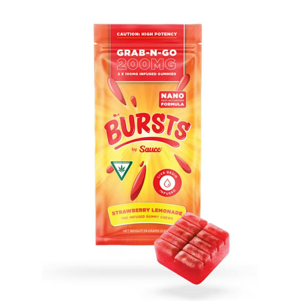 Our gummies are the best in the game! We have perfected the potency, flavor, ingredients, process and activation time. Bursts by Sauce are powered by our 2X Nano Live Resin, which is created using a proprietary process of both encapsulation and sonic energy to break down the molecule size. This makes the gummy hit faster, harder and smoother than any other gummy. Our gummies are also organic, and vegan and gluten free!