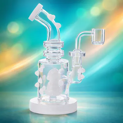 Add a clean, high-end look to your setup with this multi-marble white glass dab rig. Built for smooth, flavorful pulls, it features a compact chamber with an internal diffusion design that helps cool vapor fast while keeping the draw comfortable. The white marble accents give it a premium, textured style and extra grip, and the angled neck with a wide mouthpiece makes every session feel easy and controlled. Finished with a quartz banger (as shown), it’s a standout everyday rig that looks as good as it hits.