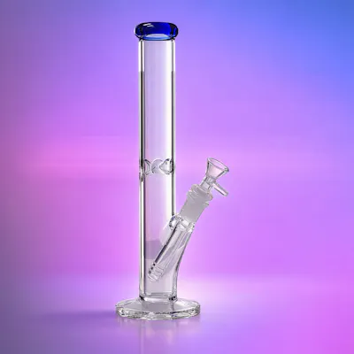 Keep it clean and classic with this 12-inch straight-tube glass water pipe featuring a sleek blue accent mouthpiece. Built with a wide 90mm diameter chamber for a steady pull and smooth diffusion, this piece delivers a simple, reliable setup that looks sharp in any collection. The thick, stable base helps it sit securely, while the angled joint keeps your bowl positioned comfortably for easy use. Unbranded and versatile—perfect for shops, bundles, or anyone who wants a timeless daily driver.