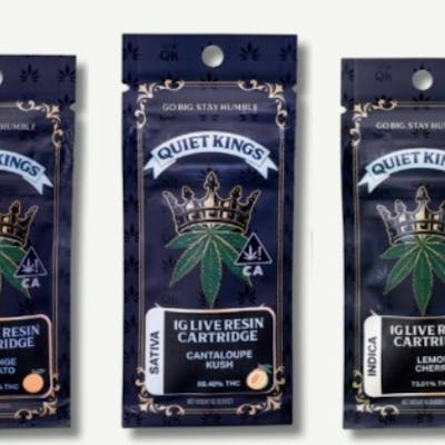 SMOKE LIKE A KING ( or QUEEN ) A 1gm LIVE RESIN 510 Cartridge by Quite Kings that gives you the royal treatment.. without the stuffy price point! Known for its potent and balanced effects, offering a blend of uplifting euphoria and relaxing physical sensations. It features a sweet and fruity flavor profile, resembling a dessert with tart citrus, sweet berries, and hints of cake and pine, alongside an aroma of sour cherries and citrus.