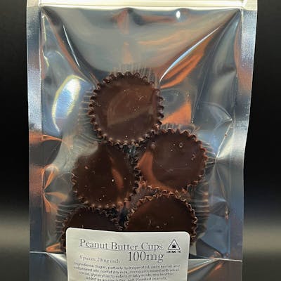 5 Peanut Butter Cups, 20mg THC each cup, 100mg total.