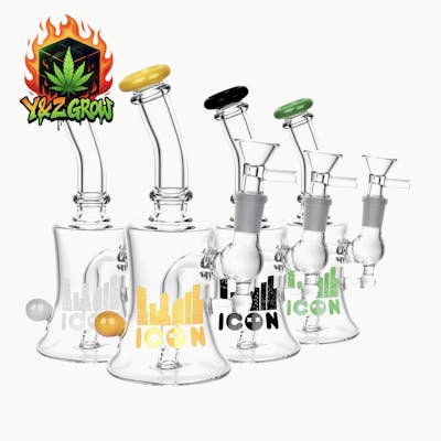 The Icon Baggins Water Pipe from Diamond Glass is hand made in the USA with durable borosilicate glass. Features a bell-shaped base to keep the pipe balanced, fixed diffuser downstem and 14mm female joint. Includes a 14mm male glass herb slide. Pipe stands 7 inches tall. Diamond Glass is a quality glass blower based in California. These folks are at the cutting edge of pipe design and constantly producing new unique designs not found anywhere else. DG's pipe offerings include rigs, bongs, bubblers, dab straws, hand pipes, ash catchers and more! Pieces include top-performing percolators and fun color accents.