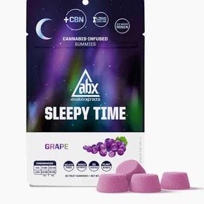 ABX Sleepy Time Gummies are formulated to help you wind down and rest easy. Each plant-based gummy delivers 5mg THC and 2.5mg CBN, with calming terpenes and solventless ice water hash rosin from whole flower cannabis. Made in small batches with no gelatin and long lasting effects you can count on, Sleepy Time Gummies are your go-to for better nights.