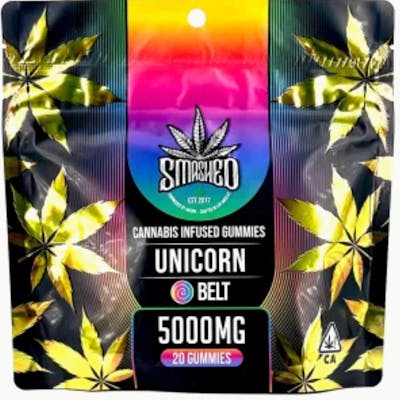 Unwrap the joy of pure edible bliss with Smashed Unicorn Belts. Each magical bag of Smashed Unicorn Belts is packed with a potent 5000mg of THC, offering a long-lasting and potent experience. These edibles make every bite an adventure for your taste buds. Plus, with their convenient size and bulk packaging, Smashed Cannabis Gummies are the perfect companion for every lifestyle. Enjoy high potency and exceptional quality with Smashed Gummies 5000mg!