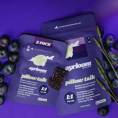 Product Name: Ayrloom Pillow Talk Gummies – 10mg THC / 10-Pack Category: Edibles / Gummies / THC + Melatonin / Sleep Support Brand: Ayrloom Ayrloom Pillow Talk Gummies are your nighttime essential for deep, restful sleep. Infused with 10mg THC and melatonin, each gummy blends the calming flavors of fresh blueberries and soothing lavender to help you unwind and drift off with ease. Crafted to be fast-acting, vegan, and gluten-free, Pillow Talk is perfect for ending your day on a peaceful note and waking up refreshed. Sweet dreams start here. Flavor Profile: Blueberry, Lavender Effects: Sleep-Inducing, Calming, Relaxing Formula: THC + Melatonin Format: 10-Pack | 10mg THC per gummy (100mg total THC) Highlights: Fast-Acting, Vegan, Gluten-Free, Sleep Support Now available at ZenZest Cannabis Dispensary: Staten Island: 2343 Forest Avenue, Staten Island, NY 10303 Queens: 272-06 Union Turnpike, New Hyde Park, NY 11040 ZenZest offers cannabis edibles for sleep and wellness across Staten Island, Queens, and Nassau County. Shop online at ZenZest.com or stop by in-store for pickup.