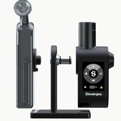 Introducing the Modül Dok Deluxe Travel Set - everything you need for the Modül and Dok in one convenient kit. The Deluxe Travel set comes complete with a Modül, a Dok with gray glass, along with Modül Tanks for both dry materials and concentrates, all enclosed in a premium fabric, drop-resistant Whats Imcluded : Stündenglass Modül Concentrate Tank Dry Material Tank Carb Cap Tank Sleeve with O-Rings Magnetic Connection Ring Loading Tool Charging Cable Premium Fabric Travel Case Gray Dok Glass Anodized Aluminum Stand 90° USB-C charging cable