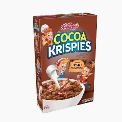 1.38oz Kellogg's Cocoa Krispies is a sweetened, chocolate-flavored puffed rice cereal, first introduced in 1958. Known for turning milk into chocolate milk, it is made with real cocoa and provides a crunchy, low-fat breakfast or snack option that is fortified with vitamins and minerals.