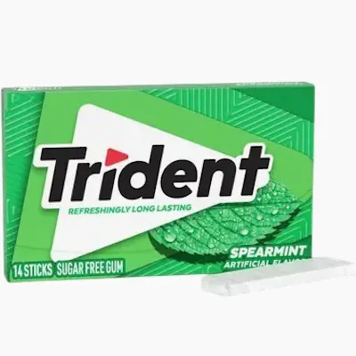 Trident Spearmint is a sugar-free gum known for its "Cool Crusader" flavor profile—a crisp, cooling mint taste designed for long-lasting freshness. Like the Original flavor, it is ADA-accepted and contains xylitol, which helps protect teeth by reducing plaque acids and stimulating saliva.