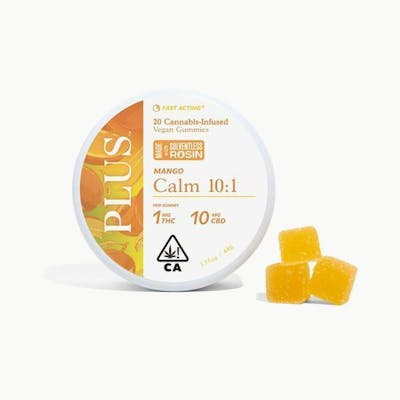 Keep calm and mango on. These delicious CBD gummies help reduce everyday stress and promote a relaxed state of mind. Each fast-acting vegan gummy contains 10mg of CBD and 1mg of Solventless Rosin THC.