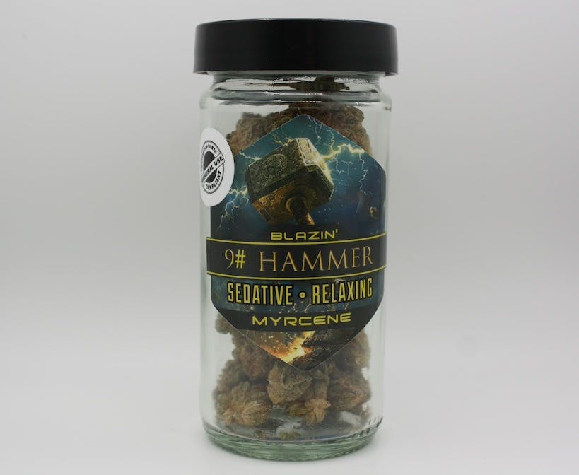 Jack the Ripper ~ Hell's Angel Og ~ Gooberry: 9lb Hammer is named how it is for a reason: This strain almost immediately hits users over the head with its heavy-duty body sedation. The mind isn't completely left out as 9lb Hammer's effects can feel as though it alters the user's perception; making sounds or colors take on a new intensity. CBG: 1%