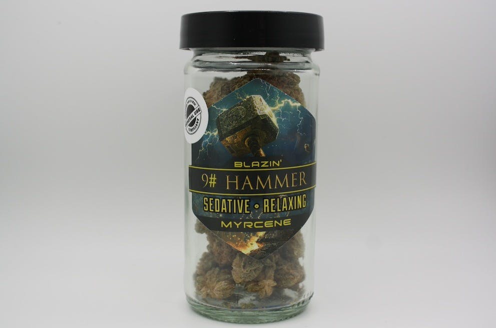 Jack the Ripper ~ Hell's Angel Og ~ Gooberry: 9lb Hammer is named how it is for a reason: This strain almost immediately hits users over the head with its heavy-duty body sedation. The mind isn't completely left out as 9lb Hammer's effects can feel as though it alters the user's perception; making sounds or colors take on a new intensity.