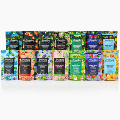 Smokiez™ Calming Sour Green Apple CBG:THC 1:1 Fruit Chews are NOT YOUR AVERAGE FRUIT CHEWS™ Cannabigerol (CBG) is a non-intoxicating cannabinoid found in cannabis. CBG has many potential therapeutic benefits, including antibacterial, antimicrobial, & anti-inflammatory qualities. Per Package: 100mg THC / 100mg CBG Per Serving: 10mg THC / 10mg CBG Vegan | Gluten Free | Dairy-Free