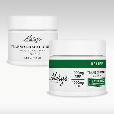 Mary's Medicinals: Topical | Transdermal Cream | Relief 1:1 | 1000mg THC : 1000mg CBD