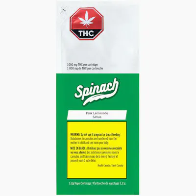 Get that summertime, thirst-quenching flavour in one delicious vape. Inspired by the strain Pink Lemonade, which has a Lemon Skunk and Purple Kush lineage, this vape is full of sweet raspberry and refreshing lemonade flavour notes. With some of the finest cannabis extract and aerosol-tested vape carts, Spinach leveled up the potency with 1000mg THC per cart. Which means bigger hits and bigger flavour.