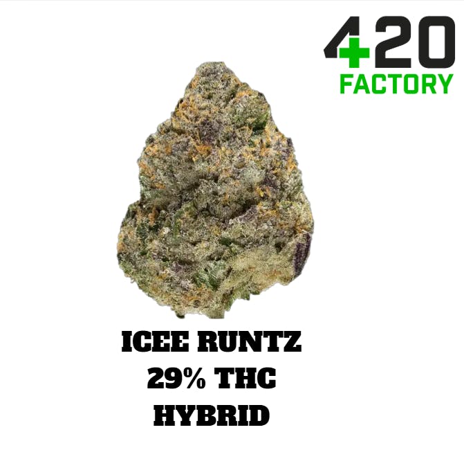 Icee Runtz, also known as “Icee Runts,” is an evenly balanced hybrid strain (50% indica/50% sativa) created through crossing the delicious Runtz X Ice Cream Cake strains. This flavorful combination creates the ultimate daytime dessert strain, with an amazing taste and instantly lifting high that will put you in an excellent mood in no time. The taste of this bud is the perfect dessert for any time of the day, with a sweet and creamy candy flavor accented by hints of fresh tropical fruits and berries. The aroma is very similar, with a sugary fruity overtone accented by sharp citrus and herbal creaminess. The Icee Runtz high will arrive smoothly, washing over both mind and body with a sense of instant euphoria. You'll feel your mental state lift as a tingle spreads from your eyes throughout the rest of your brain, eventually fading out into gentle clarity and steady contentment. A light physical sense accompanies this heady lift, leaving you feeling calm and kicked back without any sedation. In combination with its super high 21-26% average THC level, these effects give Icee Runtz an edge in treating chronic stress, chronic pain, depression or mood swings and eye pressure or glaucoma.