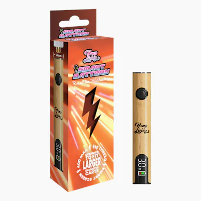 Hemp Living 510 Thread Variable Voltage LED Display Smart Vape Batteries, in 4 color option: Forest Green, Midnight Black, Rustic Hickory Wood, and White Widow. Experience the pinnacle of vaping technology! This slick device, inscribed with the Hemp Living logo, is designed to seamlessly fit all Hemp Living 2g cartridges, ensuring a smooth and cohesive look. The sophisticated finish makes it a stylish accessory for any vape enthusiast. Key Features: Variable Voltage & Pre-Heat Mode: Customize your vaping experience with adjustable voltage settings from 2-4v and pre-heat mode, allowing you to find the perfect hit every time. LED Display: Stay informed with the LED display that shows both voltage readings and battery levels, so you’re always in control of your vape experience. Universal Fit: Designed to fit all 510 thread cartridges, and optimized for Hemp Living 2g cartridges, making it a versatile choice for any collection. Easy Charge: Easy-to-charge USB-C port on bottom of device – No proprietary charger needed! Enhance your vaping experience with the Hemp Living Smart Battery – where innovation meets sophistication. DIRECTIONS FOR USE 5 Button Clicks – Device power on/off 2 Button Clicks – Engages button for 12 second pre-heat mode, countdown displayed on LED display. An additional click after pre-heat mode is engaged will cancel the timer. 3 Button Clicks – Switches to variable voltage adjustment mode. Press the button once to advance the voltage by 0.1. Hold the button for 2 seconds to select a new voltage.