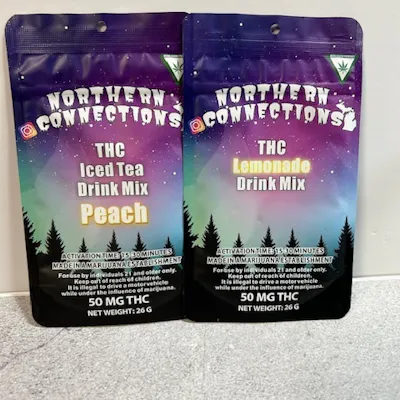 Northern Connections (NC) 50mg Drink Mixes are single-serving, nano-infused THC powder packets designed to be dissolved in water or other beverages. In Michigan, these are highly popular because they offer a faster onset than traditional edibles and come in a wide variety of "mocktail" and "coffee shop" flavors.