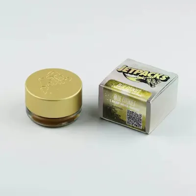 Blue Cookies is a rich, full-spectrum Live Resin Badder produced by Jetpacks, crafted from freshly frozen Blue Cookies flower. This concentrate delivers a creamy, flavorful profile with sweet blueberry and earthy cookie notes, offering a relaxing and happy experience—ideal for evening use or stress relief. Lineage: Blueberry × Girl Scout Cookies Dominance: 90/10 Indica/Sativa Effects: Relaxed, Sleepy, Happy Scents: Sweet Blueberry, Earthy Cookie Jetpacks is a NY-based cannabis brand dedicated to creating high-quality concentrates and infused products that showcase the full flavor and potency of the plant. Their mission is to craft premium, consistent cannabis experiences that elevate everyday moments, emphasizing innovation, sustainability, and consumer trust across their product lines. THC % may vary per batch. Instructions: Do not handle directly with your hands, as the concentrate is sticky. Use proper tools, preferably a heated dab knife. Store in an airtight container in a cool, dark place (refrigeration recommended). Check consistency before use—product should not be too hard or too runny. Consume in small doses.