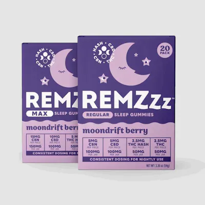Ease into restful nights with REMZzz Moondrift Berry Gummies, expertly crafted in a balanced 1:2:2 THC:CBN:CBD ratio to support relaxation and sleep-focused wellness. Each 20-pack contains 100mg total cannabinoids, blending THC for gentle euphoria, CBN for nighttime support, and CBD for calming balance. Featuring a smooth mixed-berry flavor, Moondrift Berry delivers a delicious and consistent edible experience designed for evening use. The thoughtfully formulated ratio encourages a soothing body feel and tranquil mindset, making it ideal for winding down after a long day. Product Highlights: Cannabinoid Ratio: 1:2:2 THC:CBN:CBD Total Cannabinoids: 100mg per package Format: 20 Gummies Flavor: Berry blend Effects: Relaxing, calming, sleep-supportive