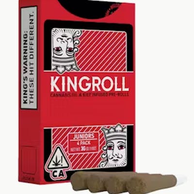 From the legendary brand Kingpen, Kingrolls are premium joints made with only whole nug flower, infused with Kingpen cannabis oil and coated in golden kief. Kingrolls are highly potent, handcrafted, flavorful pre-rolls available in a variety of complimentary flower and oil strain combinations as well as sizes for every kind of sesh.