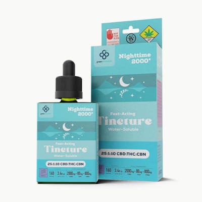 " Discover the soothing embrace of Nighttime 2000+ Fast-Acting Tincture, a revolutionary sleep aid designed to help you unwind and reconnect with your dreams. This powerful tincture boasts a potent formula with a 25:1:10 ratio of CBD to THC to CBN, optimizing the entourage effect for maximum relaxation and restorative sleep. Crafted with water-soluble technology, it ensures that each drop dissolves quickly and efficiently, providing rapid results for those seeking tranquility at the end of the day. With 160 servings per bottle, each carefully measured to ensure consistency, Nighttime 2000+ is your reliable partner in pursuing a deeper, more fulfilling night's rest."