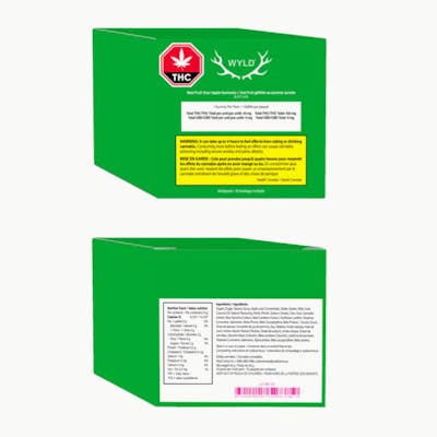 Wyld Sour Apple sativa-dominant THC gummies are made using real fruit, botanical terpenes and natural flavours. Each gummy contains 10mg THC, for a total of 100mg THC per pack. All Wyld gummies are packaged in fully compostable pouches, and our recipes are formulated by food scientists to provide consistent experiences. Each Sour Apple Sativa Enhanced gummy contains the terpenes limonene, valencene, beta-caryophyllene, alpha-pinene, and beta-pinene.