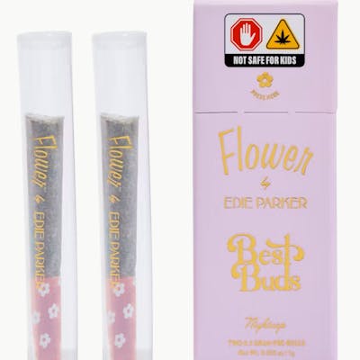 Indica Pre-Rolls - 1G / 2 Pack Container: Two (2) Individual 0.5G Pre-Rolls Each pre-roll comes packaged individually with a Flower by Edie Parker smell proof doob tube. Available in three premium blends: Early Bird, Happiest Hour, and Nightcap Effects: Our Indica is relaxing, weighted, and hazy - ideal for your nighttime ritual or pampering and unwinding. Together with our cultivators, we focus on crafting the purest Flower, cultivated sustainably for your pleasure. "Flower by Edie Parker may be fun and joyous in the package, that is for certain. But contained inside those multi-colored jars is craft cannabis that will get you really st*ned. This is true ultra-luxury cannabis quality inside and out." -FORBES