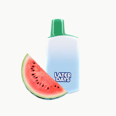 FROZEN WATERMELON HYBRID AIO DISPOSABLE 2G Cool off with Later Days' Frozen Watermelon vape. This hybrid blend hits you with a burst of juicy watermelon flavor and a frosty finish. sweet and icy, Every puff refreshes and revives, offering the perfect combo of fruit and chill to help you kick back and unwind, whenever you need it.