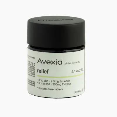 Avexia Relief microdosing tablets are a great choice for targeting serious pain and chronic inflammation. The Avexia Relief formula is another blend of CBD and THC, but this time the CBD is favored in a 4:1 ratio. Each convenient tablet still has 2.5 mg of top-quality, full-spectrum THC, but the CBD content here is upped to 10 mg per dose.