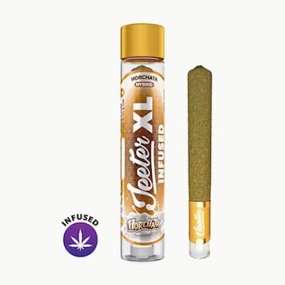 Horchata Jeeter XL Infused Rolled Joint: 2g Joint | Hybrid | Indoor Grown Infused with Distillate Oil & KiefMood: relaxed, happy, euphoric.Horchata is an evenly balanced hybrid strain created by crossing the delicious Mochi Gelato X Jet Fuel Gelato strains. Just as delicious as the drink it's named after, Horchata will have you begging for more after just one taste. This bud has a sweet and fruity berry flavor with a creamy overtone that has just a touch of light spices. The aroma is a little spicier, with a peppery effect that's accented by sugary sweet and fruity berries. Horchata provides body high, cerebral, euphoric, creative, uplifting, and relaxing effects. Horchata is ideal for treating those suffering from chronic pain, depression, chronic stress or anxiety and PTSD.